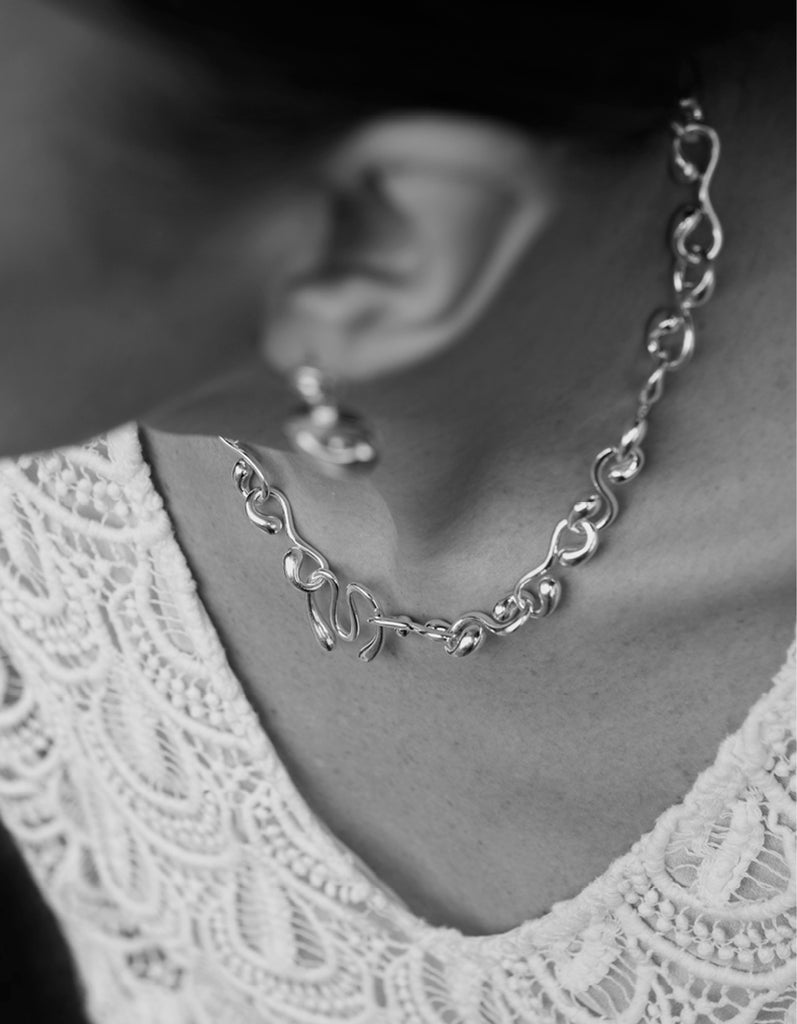 Liquid silver is a malleable and whimsical material, solidifying into ornamental, unexpected forms. The Malleable Collection was created in collaboration with 3D visual artist and designer, Ada Sokół.