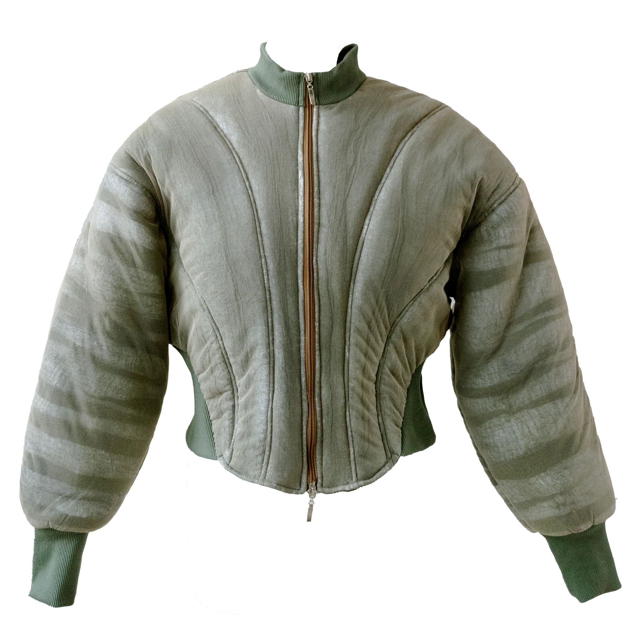 A new evolution of GAUZE — this puffer vest is crafted from layered padding, gauze, and a transparent mesh outer fabric that adds protection and a modern, lightweight feel. The design merges the casual cut of a vest with a streamlined, corset-inspired silhouette that highlights the waist and creates a structured yet feminine shape. Finished with soft jersey ribbing and a two-way zipper, it offers a refined balance of comfort, texture, and contemporary style.