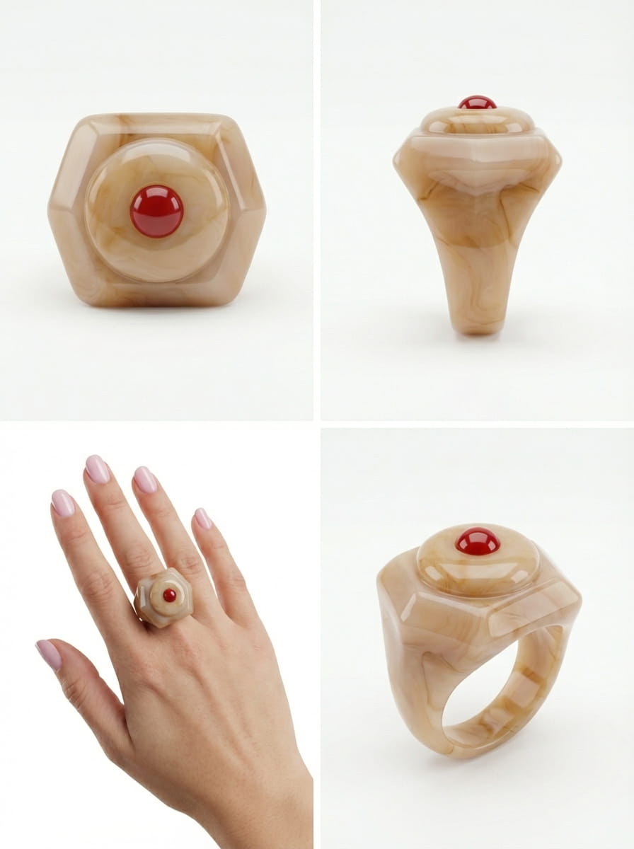 Sculptural Resin Ring – Marbled Nude