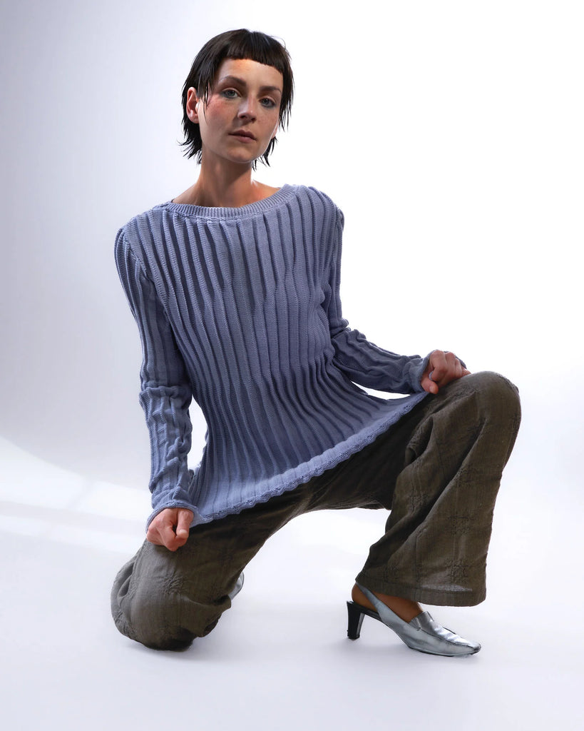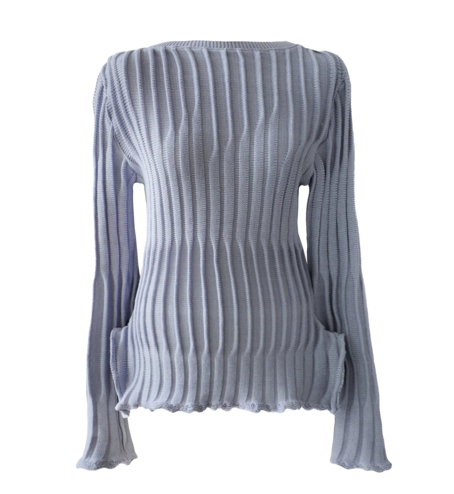 The boatneck long sleeve features a unique knit pattern made from 100% cotton yarn. The three-dimensional, heavy knit structure is developed in collaboration with a knitwear manufacturer exclusively for Halo Labels. This top offers warmth, comfort, and stretch.